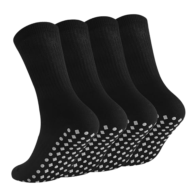 These non-slip socks may help enhance traction and prevent slips on smooth surfaces. Made from soft, breathable combed cotton with moisture-wicking properties, they may help keep feet dry and comfortable during extended wear. Suitable for a variety of settings such as hospitals, yoga studios, or home use, these durable socks feature reinforced toe and heel areas and are machine-washable for long-lasting performance.